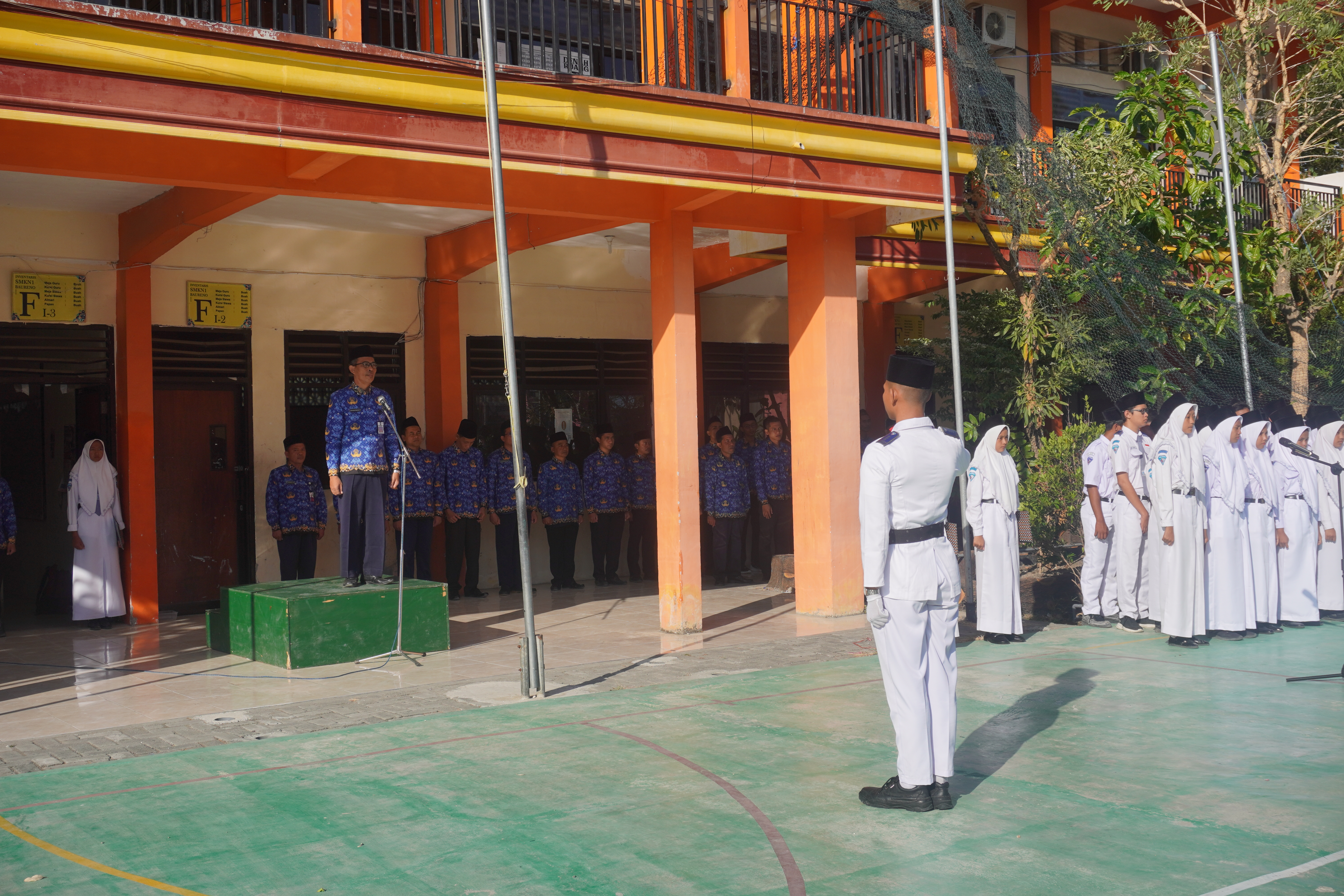 Upacara bendera 17 Agustus 2023 tahun ini di SMKN 1 Baureno Bojonegoro berlangsung dengan khidmat dan dipimpin Waki Kepala Sekolah Kurikulum ( Didik Budi Prayogo, S.Pd) yang bertindak sebagai pembina upacara, petugas upacara oleh dewan guru dan pengibar